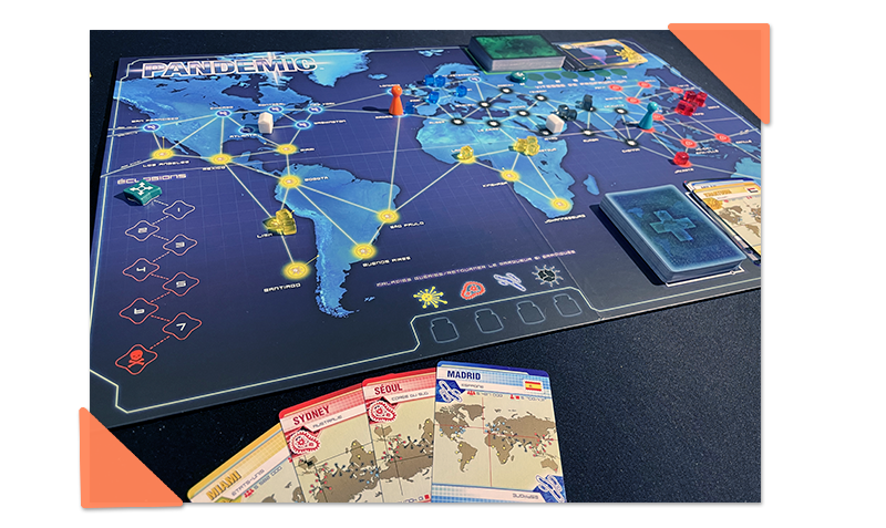 To dynamism to the game, the designer had the brilliant idea to make you shuffle “Epidemic cards” at semi-regular intervals inside the deck. You’re in for an immediate adrenaline rush when you draw one of them!